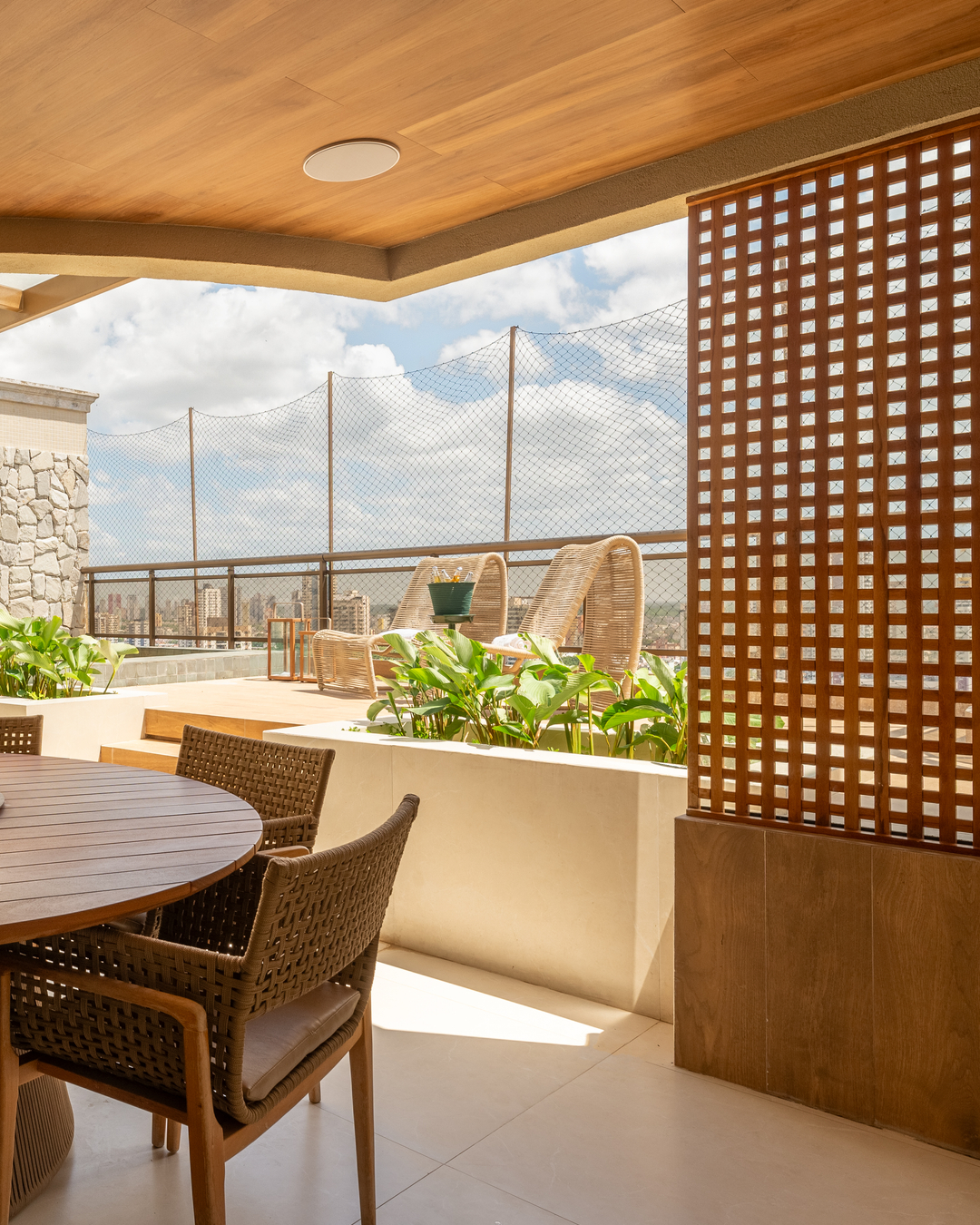 Uma reforma completa renovou o apartamento de cobertura na capital do estado. No entanto, o ambiente que mais se beneficiou com a repaginação foi o gourmet, instalado na varanda: ele ganhou uma mesa de refeições maior depois que a piscina passou por um redesenho. Pedras, porcelanatos acetinados e muita madeira, somados ao novo jardim, deram um tom natural à ambientação.