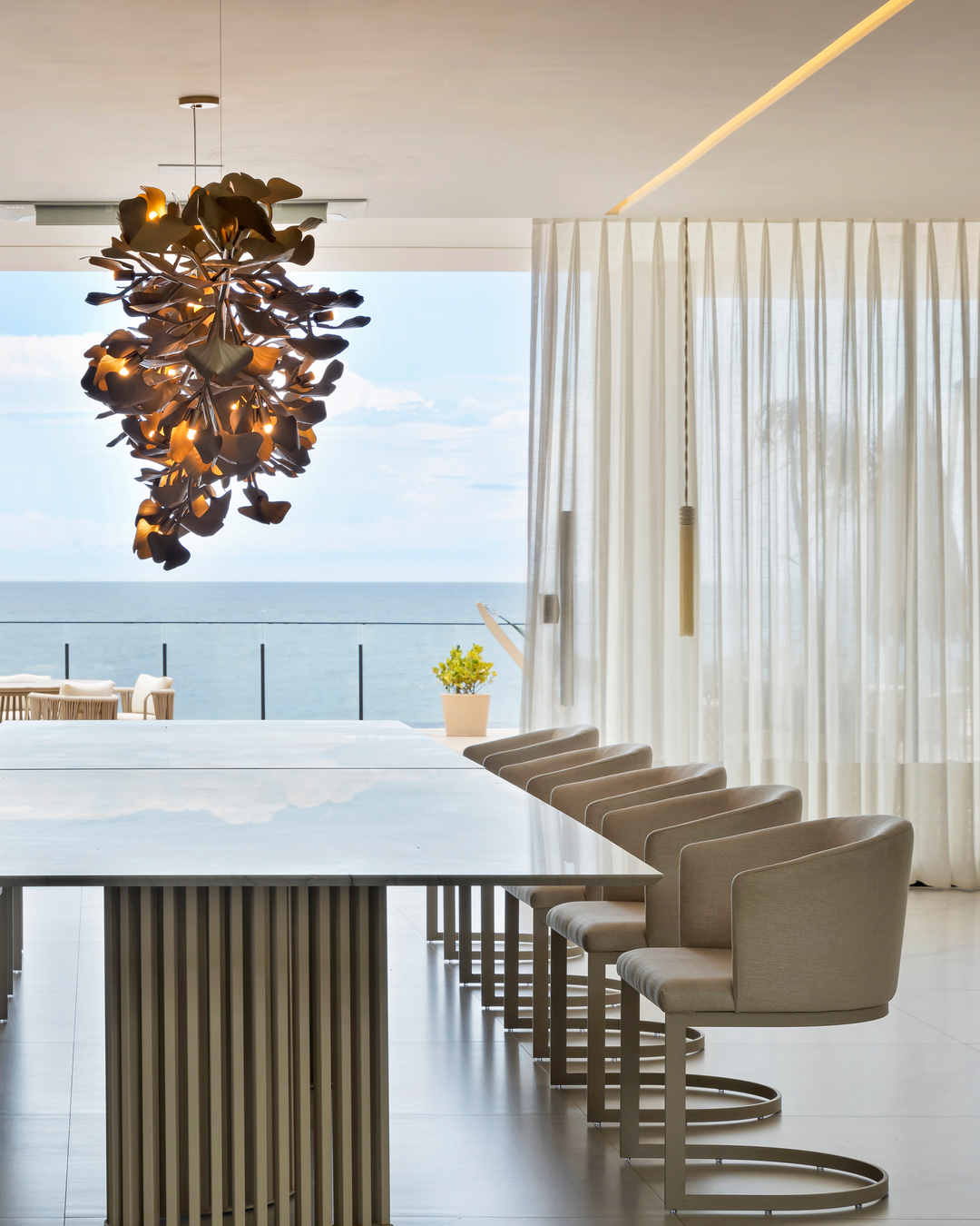 A arquitetura contemporânea brasileira, com linhas puras e conexão com a paisagem, serviu de referência para a reforma da casa de 1500 m² implantada em um lote urbano com acesso direto ao mar. Grandes panos envidraçados tomaram o lugar de alvenarias, e a luz solar dominou os ambientes integrados de lazer, como a área gourmet unida à sala. Madeira clara e pedra esculpida têm protagonismo entre os acabamentos.