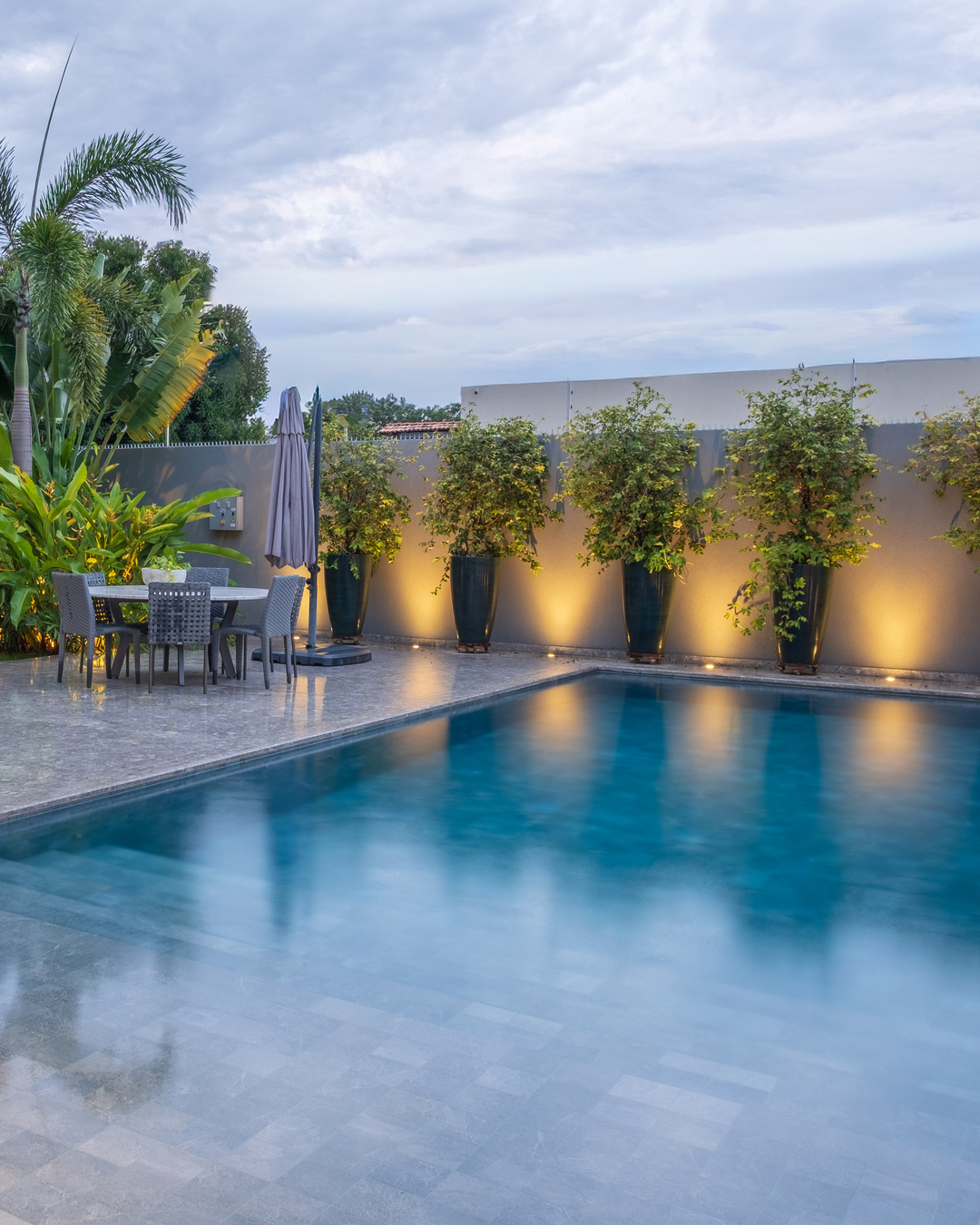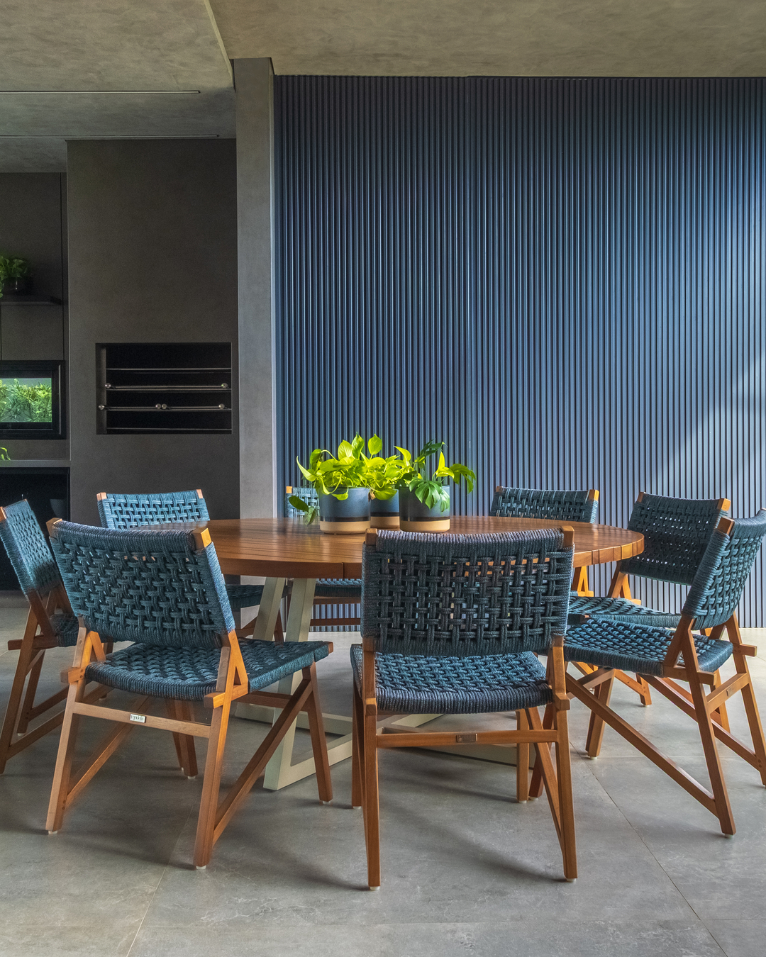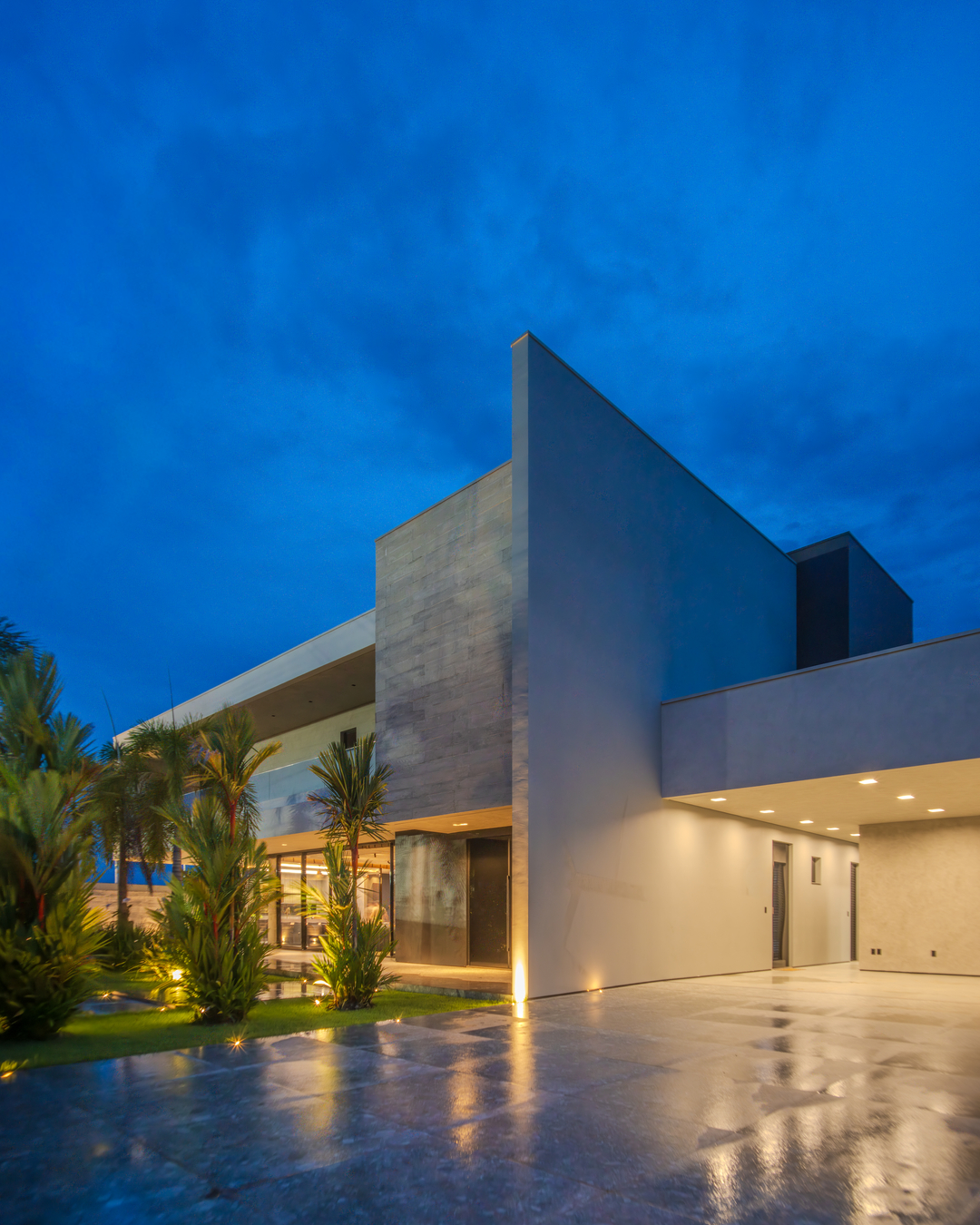 A arquiteta Natássia Cruz aproveitou a horizontalidade do terreno para conceber uma fachada que se destaca, combinando imponência e contemporaneidade em linhas retas e volumes que se sobrepõem. Os materiais reforçam a linguagem arquitetônica: concreto aparente e panos de vidro, emoldurados no vistoso paisagismo. Generosos, os espaços respondem à praticidade e à integração pedidas pelos clientes, um casal jovem de Boa Vista.