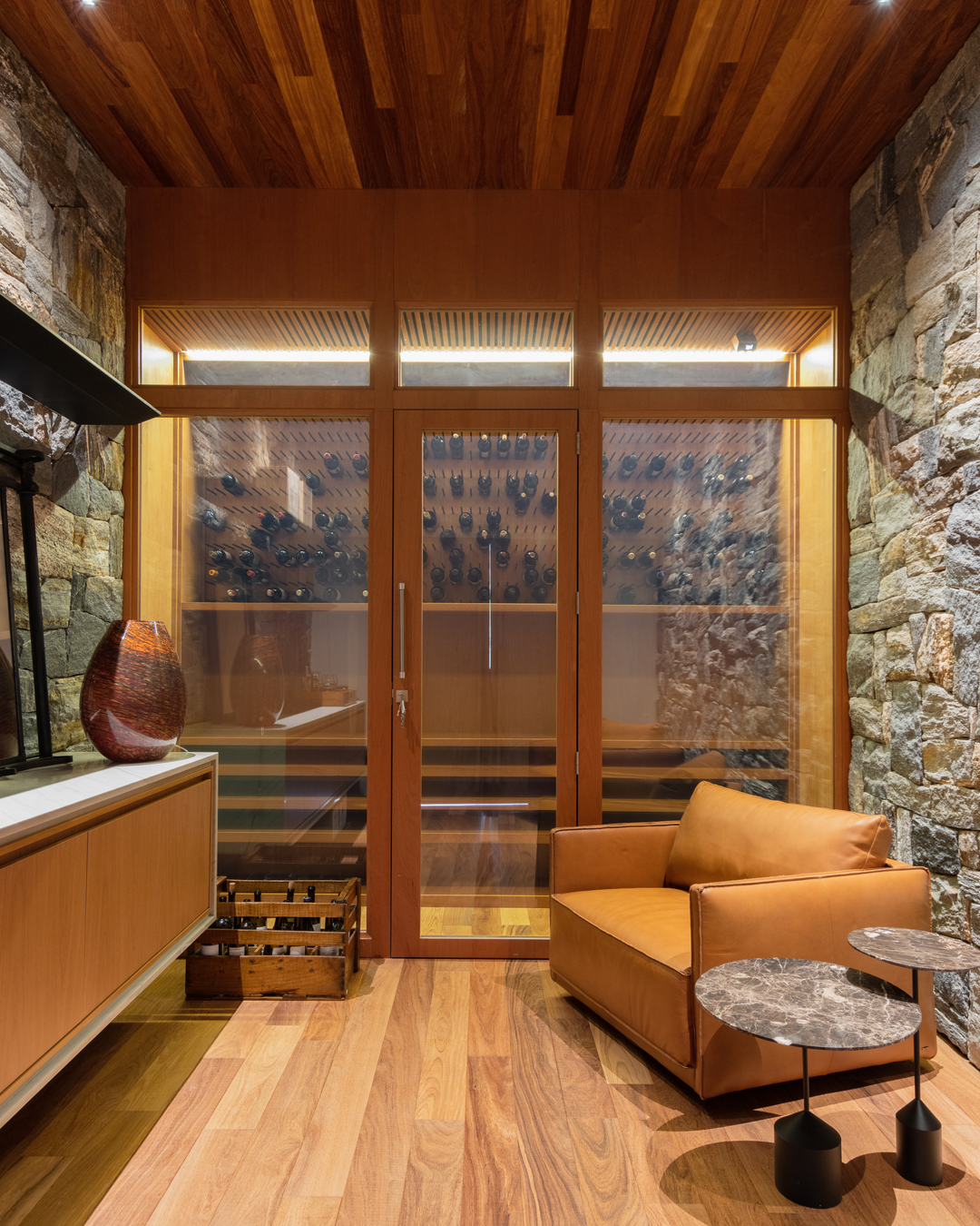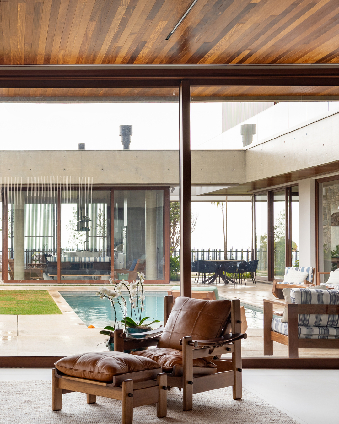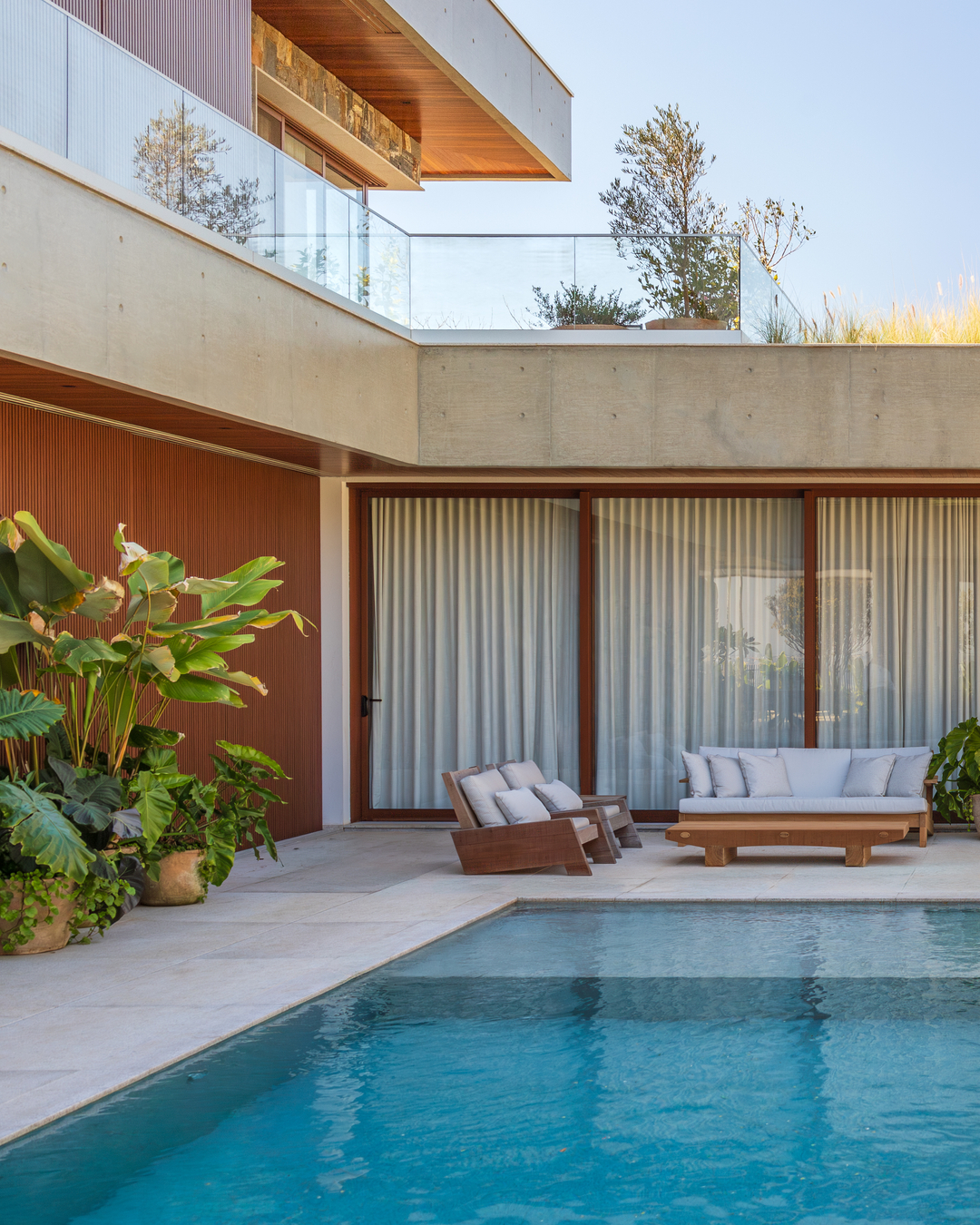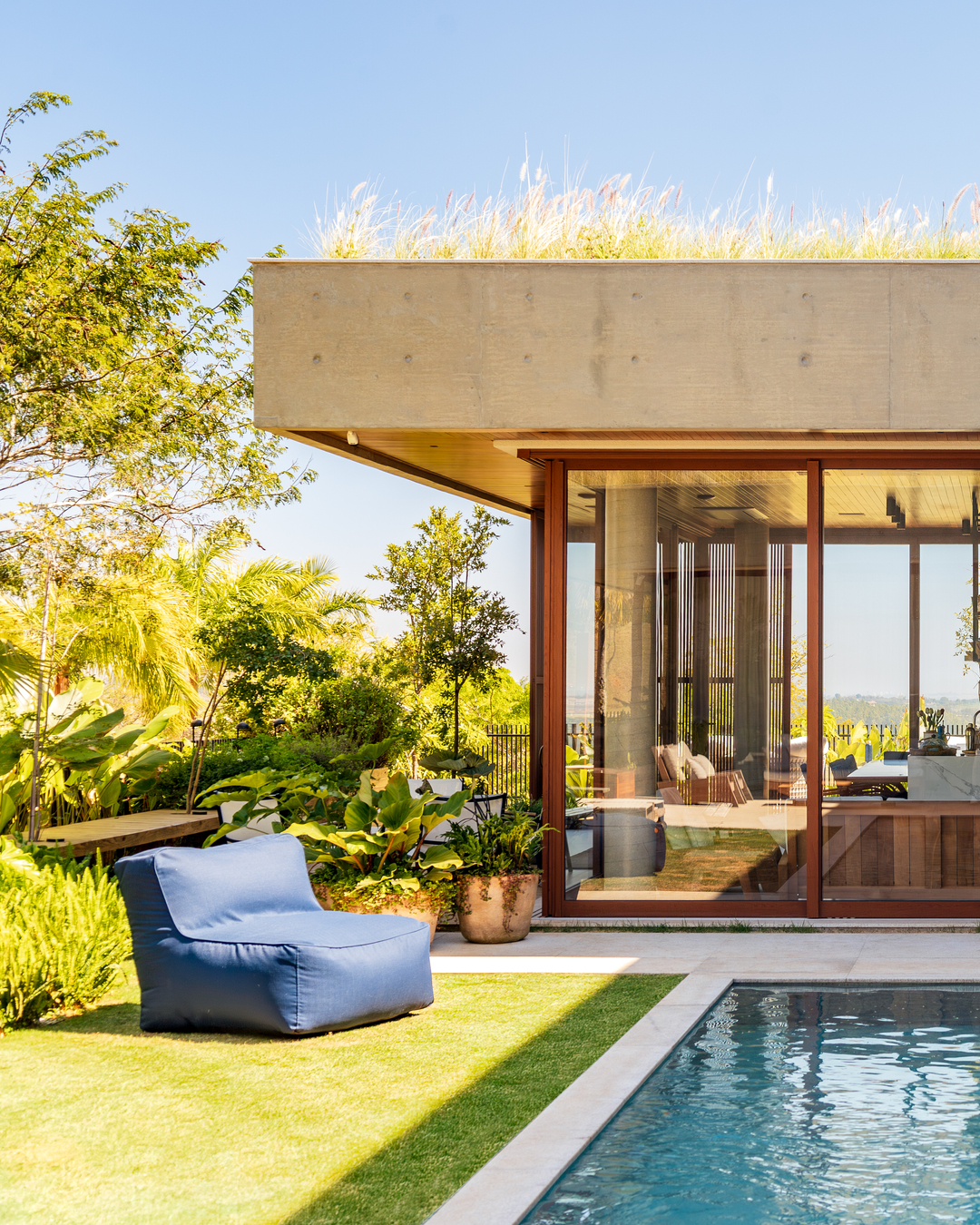 Paula Sauer e Roberta Homem de Mello assinam esta casa contemporânea que conjuga linhas retas e grandes planos de vidro com revestimentos naturais, como madeira e a pedra steel blue. Os ambientes são amplos e confortáveis, ideais para o dia a dia com os filhos pequenos e cachorros e para os momentos entre amigos na área gourmet separada. Na decoração, um mix de móveis de design nacional, peças atemporais e elementos artesanais.