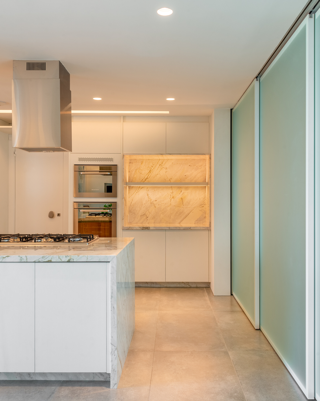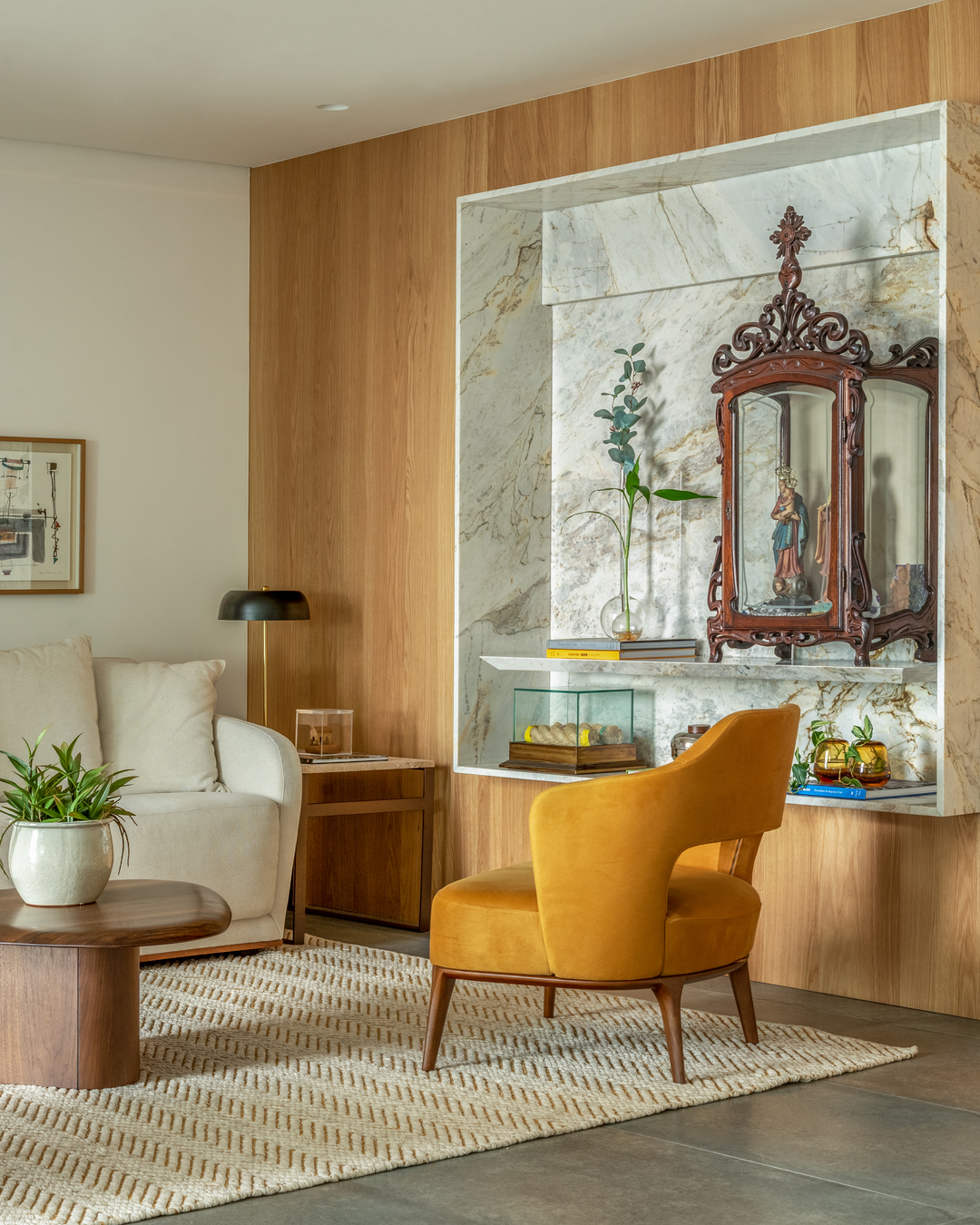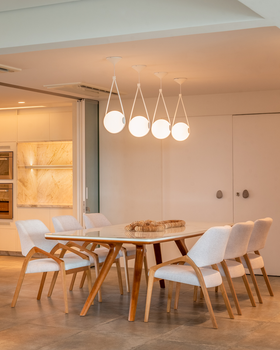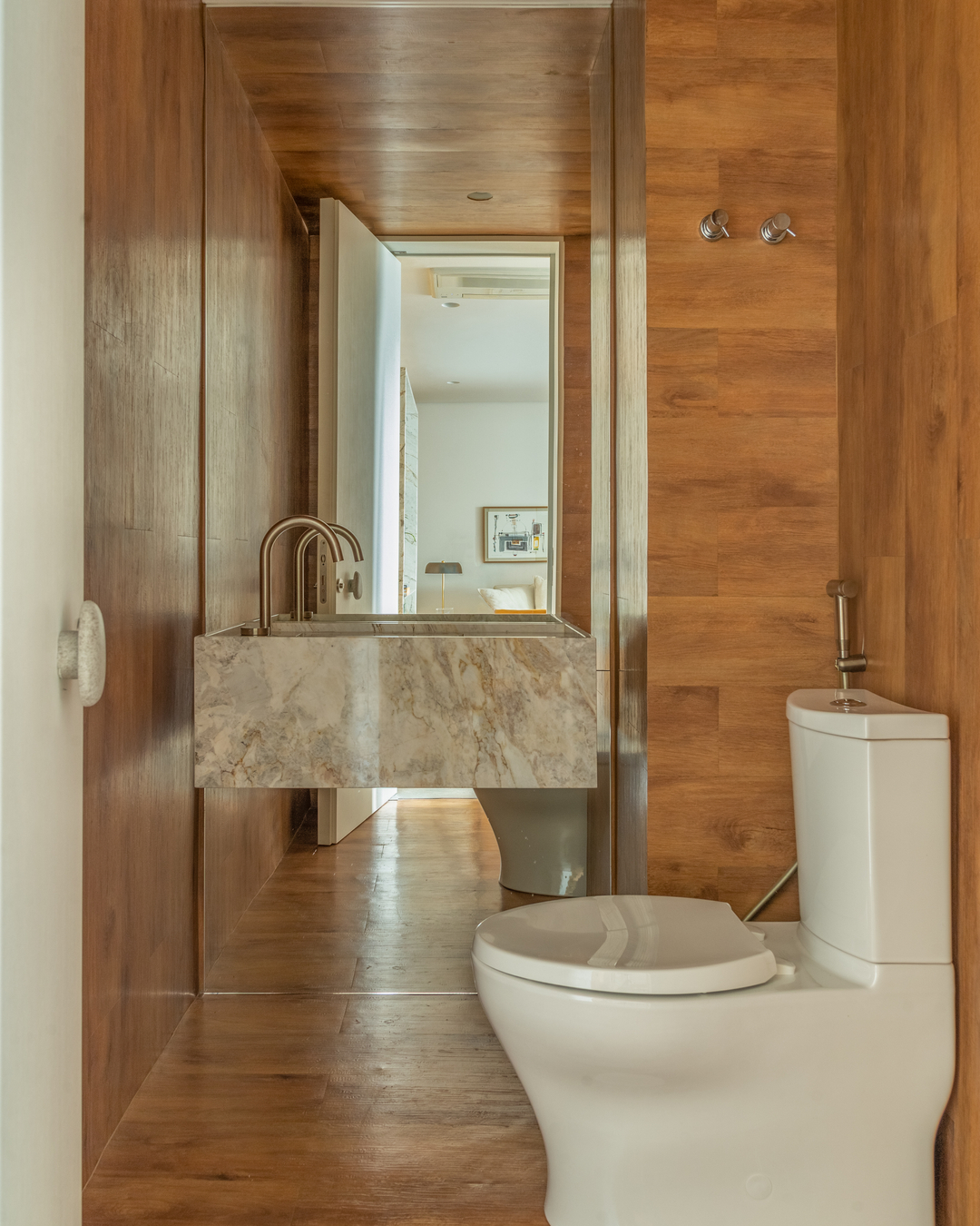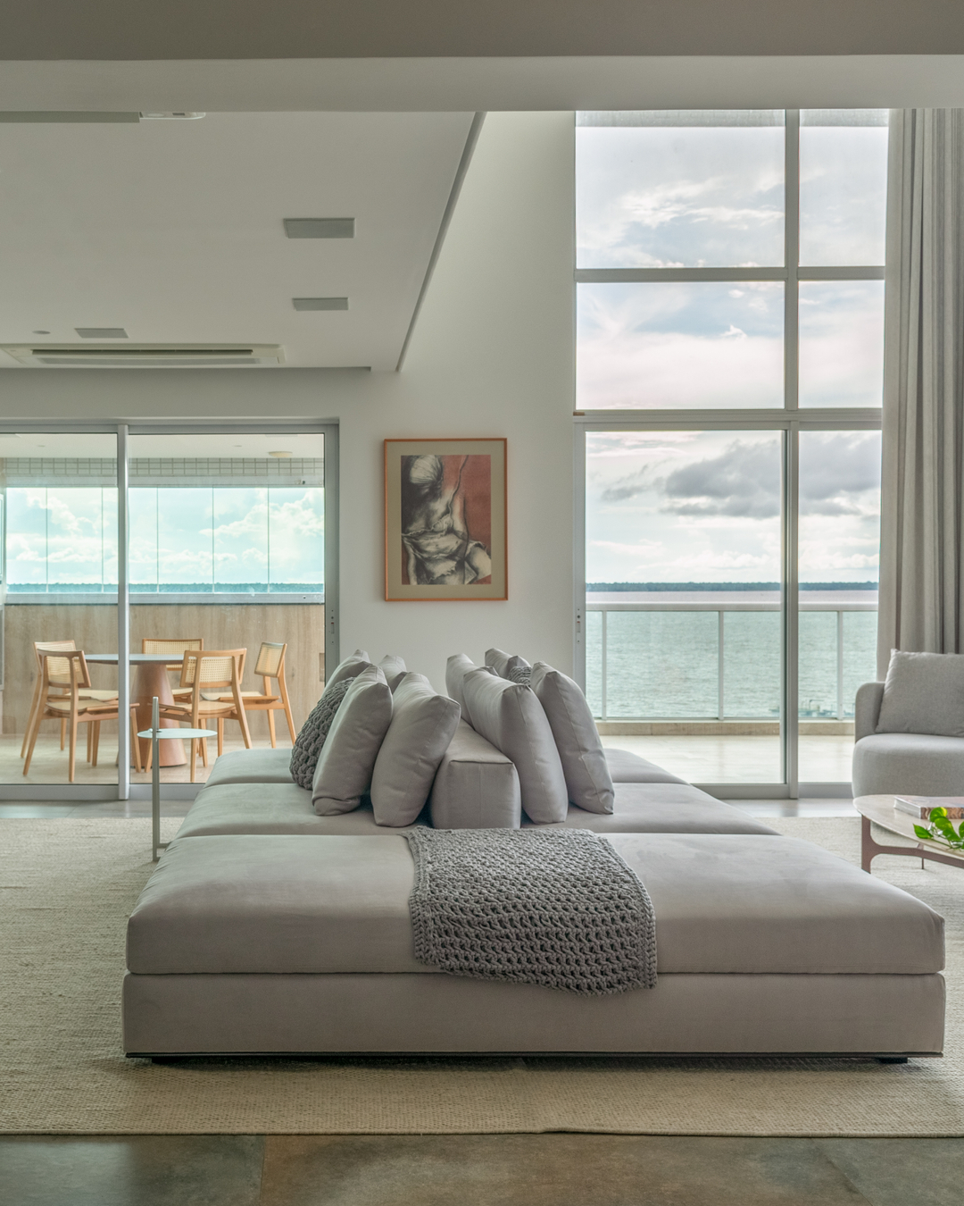 De frente para a Baía do Guajará e para as ilhas fluviais do Pará — a paisagem amazônica entra pelas aberturas envidraçadas do apartamento renovado pelo arquiteto Sandoval Ferreira Neto e pela designer de interiores Adriana Guimarães Ferreira. “A escolha de texturas e tons foi pensada para haver harmonia com a floresta e os rios”, explicam, citando pedra, madeira, palha e linho como materiais predominantes na concepção.
